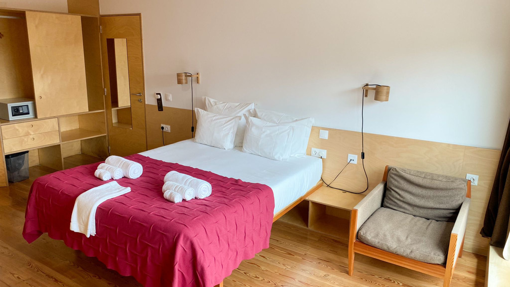 T2 - Casa com quarto com 1 cama de casal + quarto com 2 camas twin (separadas ou juntas) e possibilidade de acrescentar berço a pedido, sujeito a disponibilidade. Sala de estar, cozinha equipada com frigorífico, placa de indução e máquina de café. Terraço superior com vista para a montanha. Terraço inferior amplo, com guarda sol + espreguiçadeiras Espaço exterior para automóvel Ar condicionado