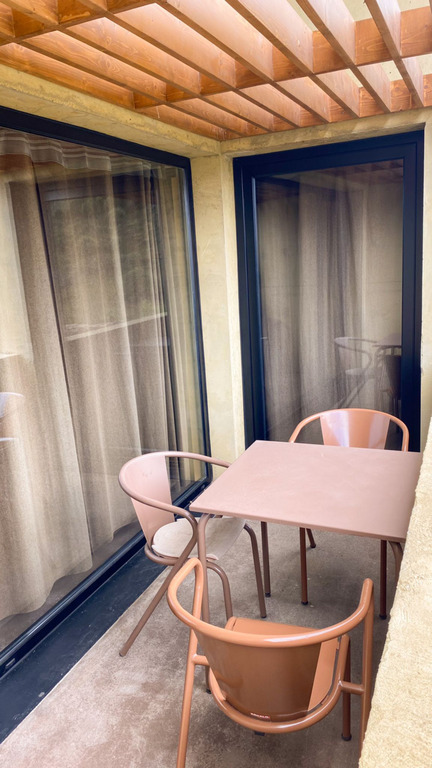 Suite familiar no exterior do hotel, com 1 cama de casal + beliche e possibilidade de berço, sujeito a disponibilidade. WC privativo com banheira + bidé + secador de cabelo TV Mesa de apoio, secretária. Espreguiçadeiras e guarda sol.